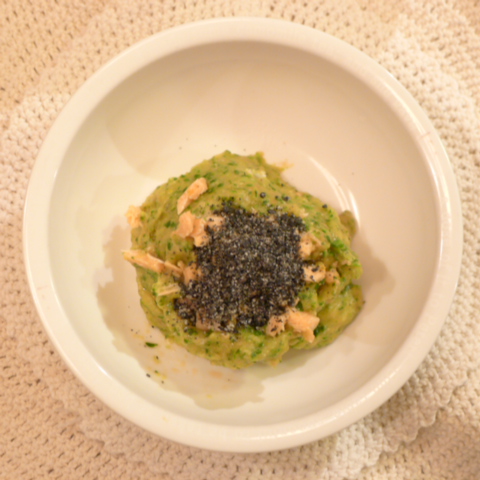 【夕ご飯】トラウト8.2g 安納芋15g 南瓜13g トマト35g きゃべつ6g ブロッコリ5g 小松菜5g おくら5g 舞茸5g 黒ごま1.5g 亜麻仁油0.3g ebi1.5T bio1.5g EsterC0.4g ブルーベリー7g 黒豆納豆3.5g 六条麦茶60g