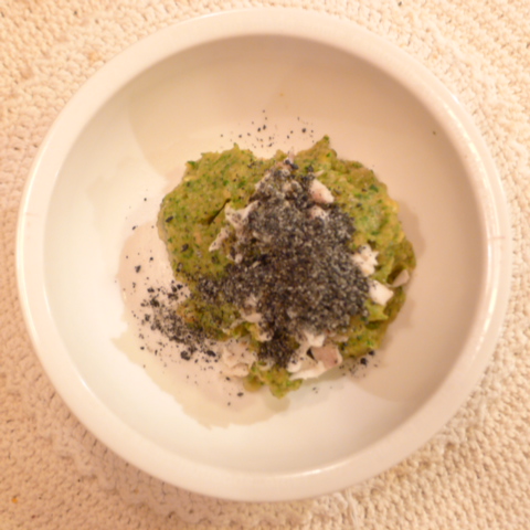 【夕ご飯】丸鯵(長崎)9g 芋15g 南瓜14g 舞茸5g トマト35g きゃべつ6.5g ブロッコリ8g 小松菜5g おくら5g 黒ごま2g 亜麻仁油0.3g ebi1T bio1.5g EsterC0.5g cilantro1g ブルーベリー8.5g 黒豆納豆3.5g 六条麦茶70g