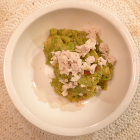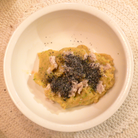 【夜食】安納芋10g 野菜10g 六条麦茶20g 豆腐20g きゃべつ8g