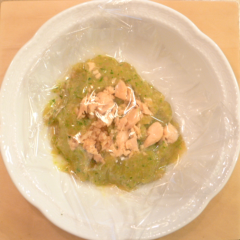 【夕ご飯】さわら(福井)8g 芋15g 南瓜12g トマト(美瑛)35g きゃべつ6g ブロッコリ6g 小松菜5g 舞茸5g bi1T bio1g plmC0.3g Ca0.2g Cilantro1cc 六条麦茶10cc