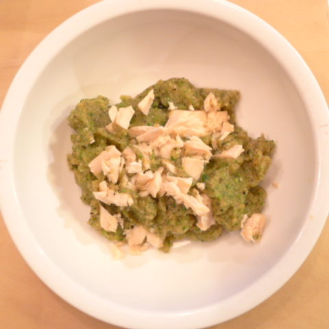 【夕ご飯】白鮭(北海道)8g 雪誉納豆3.5g 芋12g きゃべつ6g ブロッコリ6g 小松菜5g 舞茸5g 南瓜12g トマト(北海道)33g ブルーベリー7g 六条麦茶60cc bi1T bio1g パルミチンC0.3g Ca0.1g Cilantro1cc
