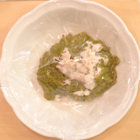 【夕ご飯】さごし(山口)8g 納豆2.8g 芋12g きゃべつ6g ブロッコリ5g 小松菜5g 舞茸5g トマト30g 黒ごま2g ebi1T bio1g EsC0.3g Cilantro1cc Zn1/8T ブルーベリー6.5g 湯70cc