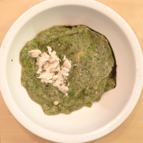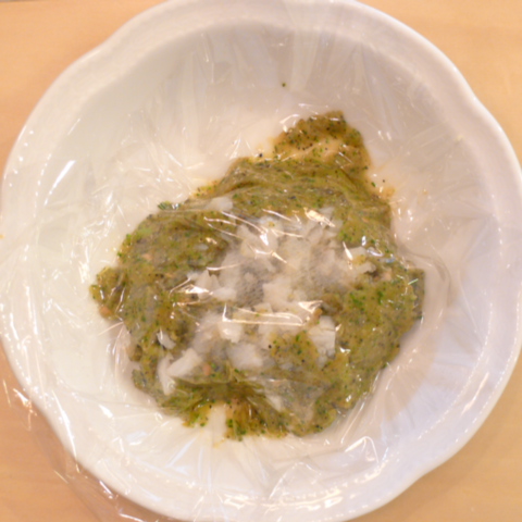 ささみ7g 納豆3.4g 芋12g 南瓜12g きゃべつ6g ブロッコリ6g 小松菜5g トマト(北海道)31g ebi1T bio1g EsC0.3g Zn1/8Tブルーベリー6.8g 湯80cc