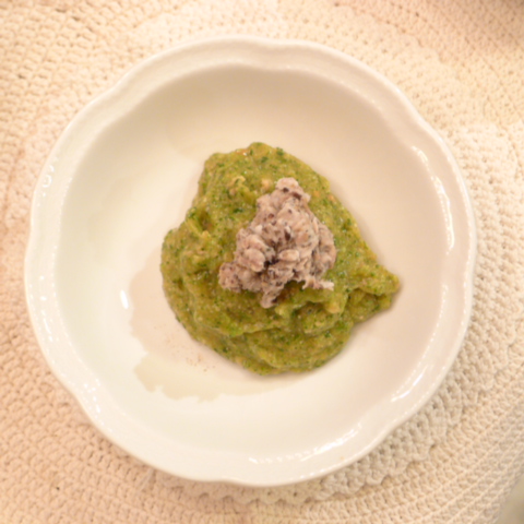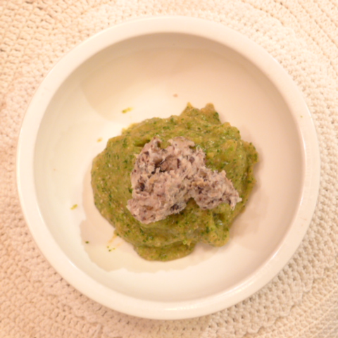 鯛(愛媛養殖)8.5g 黒豆納豆2.1g 芋16g 南瓜12g トマト29g きゃべつ5g ブロッコリ5g 小松菜5g おくら5g ebi2T bio1.5g EsterC0.25g Cilantro1g 俊粉1g 黒ごま1.5g 湯60g