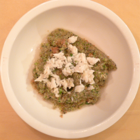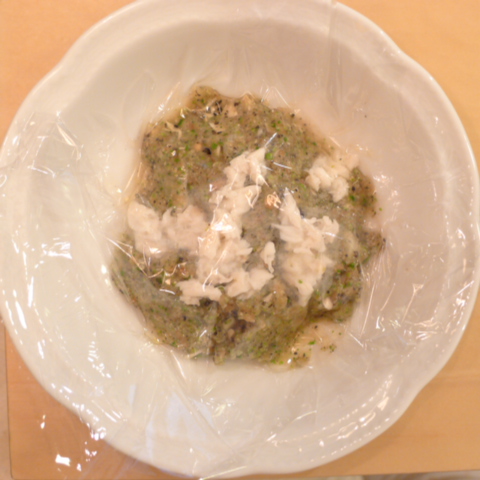 さわら(石川)7g 雪誉納豆3g 紅はるか13g 白アスパラガス(富良野)5g きゃべつ5g ブロッコリ5g 小松菜5g 南瓜10gトマト26g ブルーベリー6g 黒ごま2g ebi1T bio1g EsC0.3g cilantro1cc Zn1/8T 湯75cc