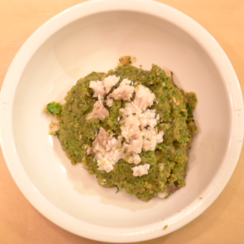 ぶり(鳥取天然)7g 黒豆納豆3.2g 安納芋12g 香菜1.5g 春きゃべつ5g ブロッコリ8g 小松菜5g 舞茸5g 南瓜11gトマト30g 黒ごま2g ブルーベリー5g ebi1T bio1g EsC0.3g Zn1/8T 湯80cc