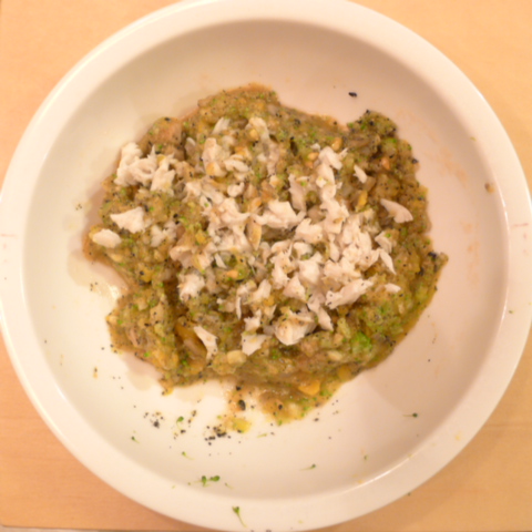 さごし(山口)7g 納豆3g 安納芋12g きゃべつ5g ブロッコリ6g 南瓜10g 舞茸3.5g えのき出汁2g トマト15g 黒ごま1.5g ebi1T bio1g EsC0.3g Zn1/8T 湯30cc