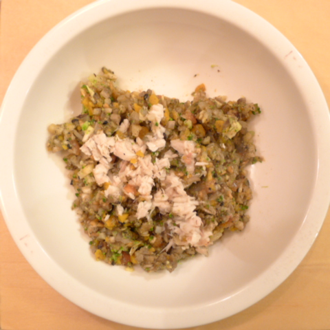 ぶり(長崎)7g 黒豆納豆2.5g 鳴門金時10g きゃべつ5g ブロッコリ5g 南瓜6g 舞茸5g トマト23g 黒ごま2g ebi1T bio2/3g EsC0.3g Zn1/8T 小岩井10g 湯100cc