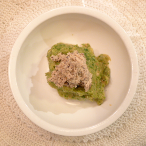 本ます(北海道)8g 黒豆納豆2.5g 芋15g 南瓜13g トマト27g きゃべつ5g ブロッコリ5g 小松菜5g 青アスパラ5g 紫アスパラ5g 白アスパラ5g 黒ごま1.5g ebi2T bio1.5g Cilantro1g 黒ごま1g 小岩井3g 俊粉0.5g 湯100g