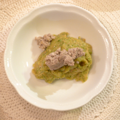 【夕ご飯】ささみ(若鶏)9g 黒豆納豆2.6g 芋15g 南瓜15g トマト31g きゃべつ5g ブロッコリ5g 小松菜5g おくら5g スナップえんどう5g ebi2T bio1.5g Cilantro1g 黒ごま1g 俊粉1g 小岩井2g 湯90g