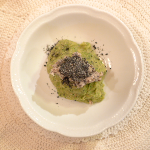 【夕ご飯】かつお(鹿児島)8g 黒豆納豆3g 芋16g 南瓜12g トマト21g 春きゃべつ5g ブロッコリ芽5g 小松菜5g スナップえんどう5g もやし5g 亜麻仁油0.3g ebi2T bio1.5g EsC0.4g Cilantro1g 俊粉1g 湯30g