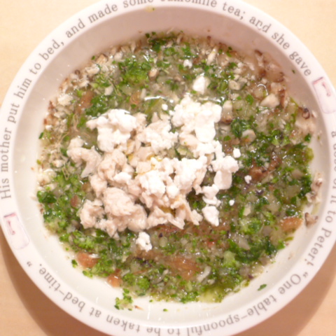 ささみ7.3g 納豆3.5g きゃべつ5g 茄子5g 紫蘇5g 人参5g プチトマト10g 昆布0.3g 舞茸出汁20g 干椎茸0.2g 亜麻仁油1g 小岩井20g カッテージ3g ebi1T bio2g Vc0.2g Ca0.2g のこぎりやし1T