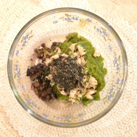 【夕ご飯】本鱒(北海道)8g 坂出金時16g 南瓜12g トマト30g 春きゃべつ5g 小松菜5g ほうれん草5g スナップえんどう5g 黒ごま1.5g 亜麻仁油0.2g ebi1.5T bio1.5g Es-C0.4g ブルーベリー5g 黒豆納豆3g 俊粉1g 湯60g