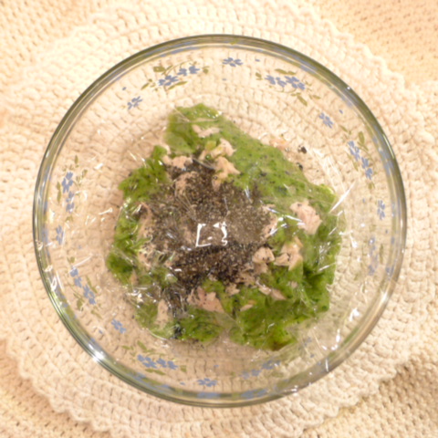 【夜食】野菜45g 黒豆納豆3g 黒千石きな粉1g 湯30g