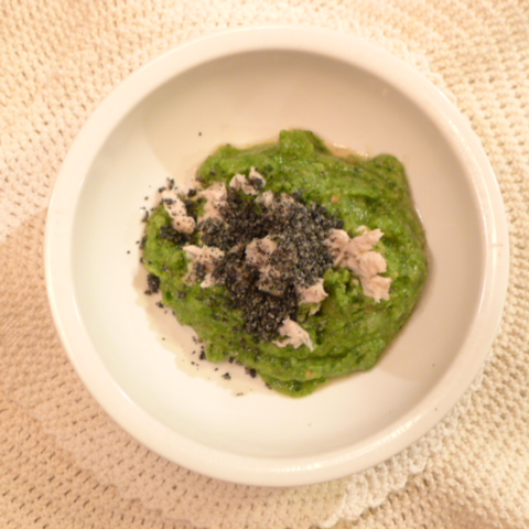 【夕ご飯】ぶり(長崎)9g 芋15g トマト32g きゃべつ5g ブロッコリ5g 小松菜5g 寒縮ほうれん草5g スナップえんどう5g 黒ごま1.5g 亜麻仁油0.3g ebi2T bio1.5g Es-C0.5g Cilantro0.8g ブルーベリー6g 黒豆納豆3.5g 黒千石きな粉1.5g 湯80g