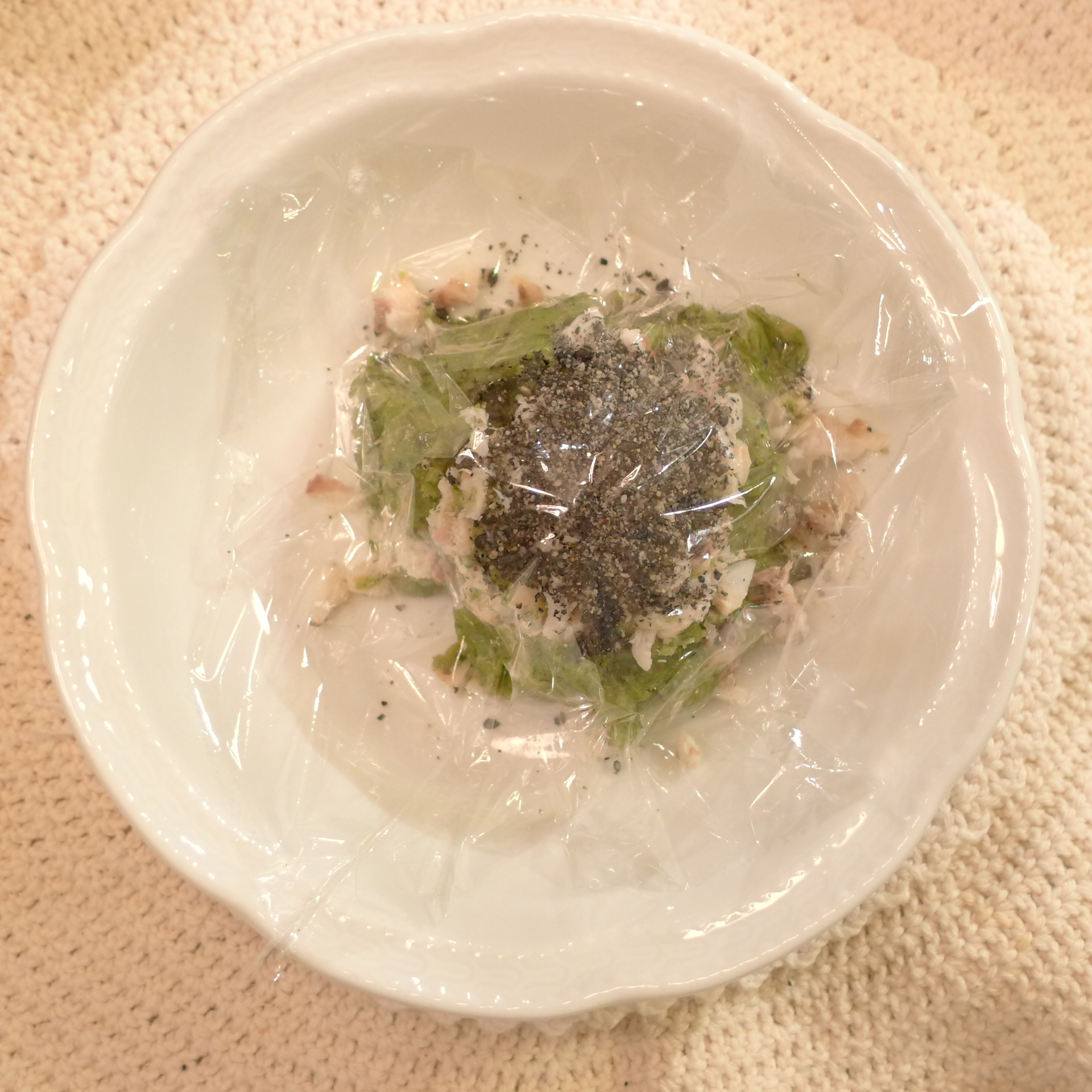 【夕ご飯】あじ(長崎)8.5g 芋15g 南瓜(鹿児島)13g トマト32g きゃべつ5g ブロッコリ6g 小松菜(長崎)5g 寒縮ほうれん草6g 黒ごま1.8g 亜麻仁油0.3g ebi2T bio1.5g PlmC0.5g Ca0.2g ブルーベリー8g 黒豆納豆3.5g 黒千石きな粉1g 湯60g
