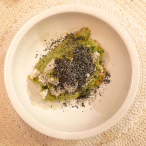 【夕ご飯】あじ(福井)8.5g 芋15g 南瓜15g 舞茸出汁5gトマト33g きゃべつ6g ブロッコリ6g 小松菜5g おくら5g 黒ごま2g 亜麻仁油0.1g ebi1T bio1.3g EsterC0.5g cilantro1g ブルーベリー8.5g 雪誉納豆3.2g 六条麦茶80g