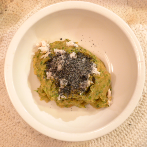 【夕ご飯】ぶり(福井)8.5g 安納芋15g 南瓜15g トマト35g きゃべつ6g ブロッコリ6g 小松菜5g おくら5g 舞茸5g 黒ごま1.5g 亜麻仁油0.1g ebi1T bio1.5g EsterC0.5g cilantro1g ブルーベリー7.5g 黒豆納豆3.5g 六条麦茶70g