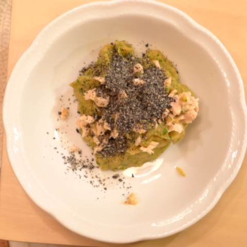 【夕ご飯】秋鮭(北海道)8.5g 芋15g 南瓜12g トマト35g きゃべつ5g ブロッコリ6g 小松菜6g おくら5g 舞茸5g 黒ごま1.5g ebi1T bio1g EsterC0.4g 黒豆納豆3.5g ブルーベリー7g 六条麦茶90g