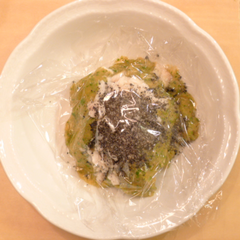 【おやつ】野菜25g 南瓜10g もち麩(半兵衛1.2g) 湯