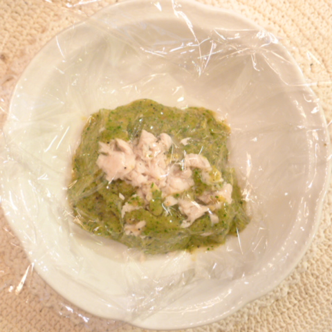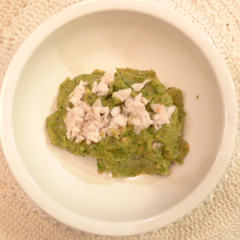 【夕ご飯】白鮭(北海道)8.5g 芋16g 南瓜12g トマト35g きゃべつ6g ブロッコリ6g 舞茸5g+出汁5g 黒ごま0.8g 亜麻仁油0.5g ebi1T bio1g plmC0.5g Ca0.18g 麦茶20cc
