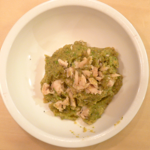 【夕ご飯】白鮭(北海道)8g 雪誉納豆3.1g 芋15g 南瓜12g トマト(平取町)35g きゃべつ6g ブロッコリ6g 島オクラ(沖縄)1.5g 舞茸5g 黒ごま2g 亜麻仁油0.3g ブルーベリー6.8g ebi1T plmC0.4g Ca0.2g 六条麦茶60cc