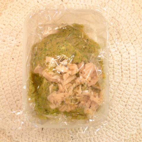 ぶり(北海道)8g 雪誉納豆3.5g 芋15g 南瓜11g トマト(平取町)30g きゃべつ6g ブロッコリ6g 島オクラ(沖縄)6g 舞茸出汁5g ブルーベリー5.8g ebi1T plmC0.3g Ca0.2g 六条麦茶