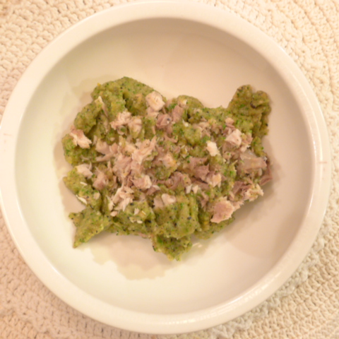 【夕ご飯】さんま(北海道)8g 芋15g 南瓜10g トマト(平取町)35g きゃべつ6g ブロッコリ6g 島オクラ(沖縄)5g 舞茸3.5g 黒ごま2g 亜麻仁油0.5g ebi1T plmC0.5g Ca0.2g 六条麦茶70cc