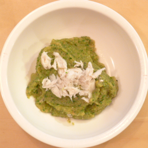 白鮭(北海道)8g 黒豆納豆3.1g 芋15g 南瓜12g 麩(半兵衛)0.5g トマト(美瑛)35g きゃべつ6g ブロッコリ6g 小松菜6g ブルーベリー7g bi1T bio1g plmC0.3g Ca0.2g 六条麦茶60cc