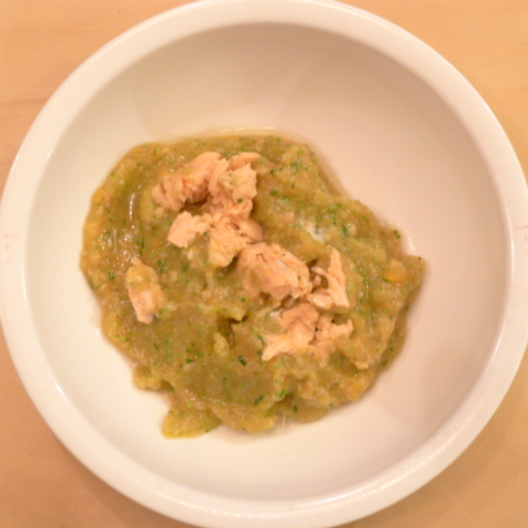 【夕ご飯】さわら(福井)8g 芋15g 南瓜12g トマト(美瑛)35g きゃべつ6g ブロッコリ6g 小松菜5g 舞茸5g bi1T bio1g plmC0.3g Ca0.2g Cilantro1cc 六条麦茶10cc